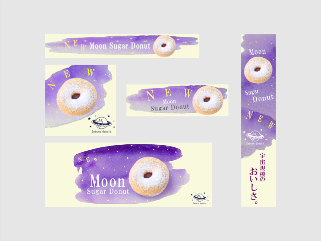 架空のドーナツ店「Saturn Donuts」の新商品バナー。